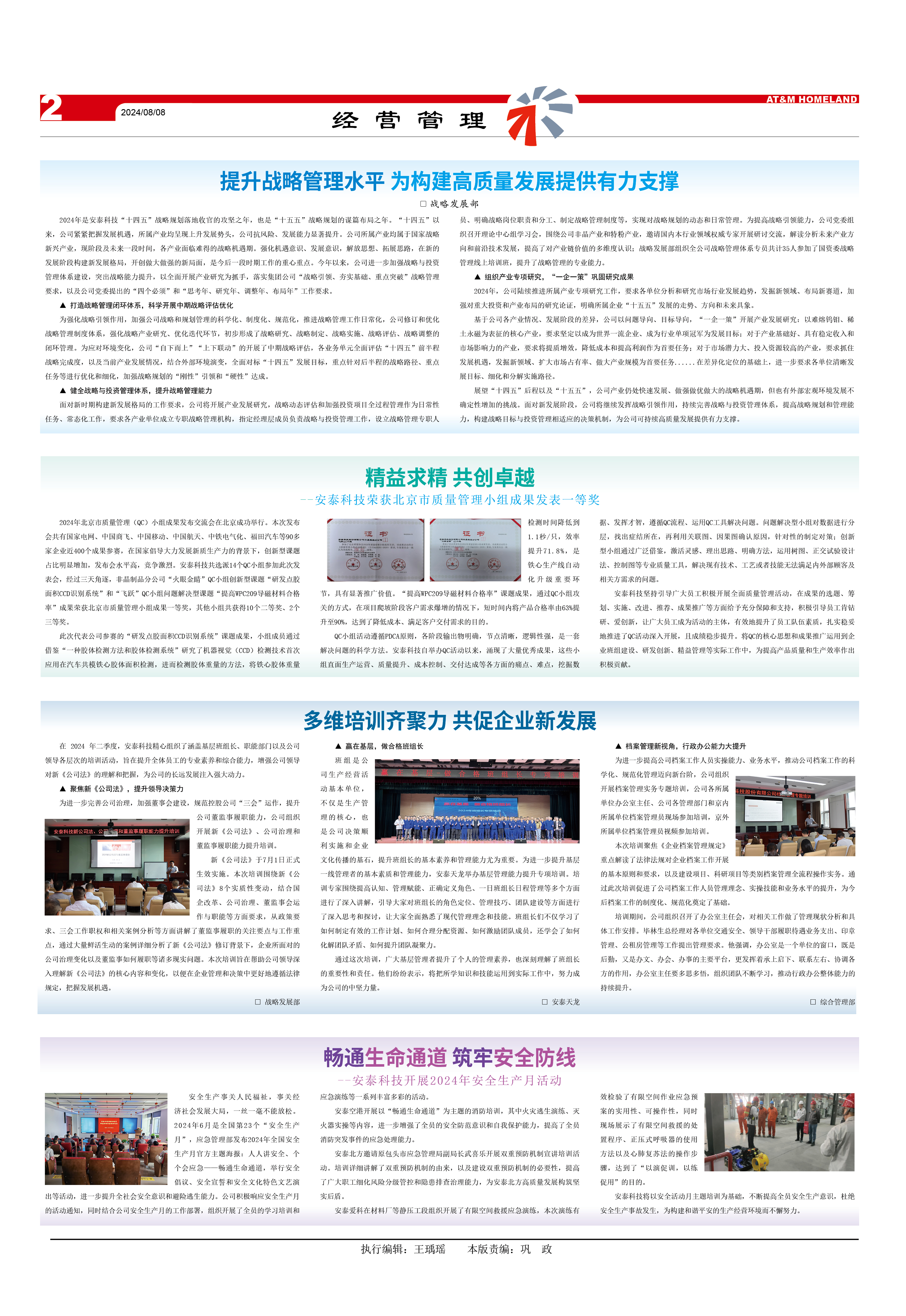 2024年是安泰科技“十四五”戰略規劃落地收官的攻堅之年,也是“十五五”戰略規劃的謀篇布局之年?!笆奈濉币詠?,公司緊緊把握發展機遇,所屬產業均呈現上升發展勢頭,公司抗風險、發展能力顯著提升。公司所屬產業均屬于國家戰略新興產業,現階段及未來一段時間,各產業面臨難得的戰略機遇期。強化機遇意識、發展意識,解放思想、拓展思路,在新的發展階段構建新發展格局,開創做大做強的新局面,是今后一段時期工作的重心重點。今年以來,公司進一步加強戰略與投資管理體系建設,突出戰略能力提升,以全面開展產業研究為抓手,落實集團公司“戰略引領、夯實基礎、重點突破”戰略管理要求,以及公司黨委提出的“四個必須”和“思考年、研究年、調整年、布局年”工作要求。