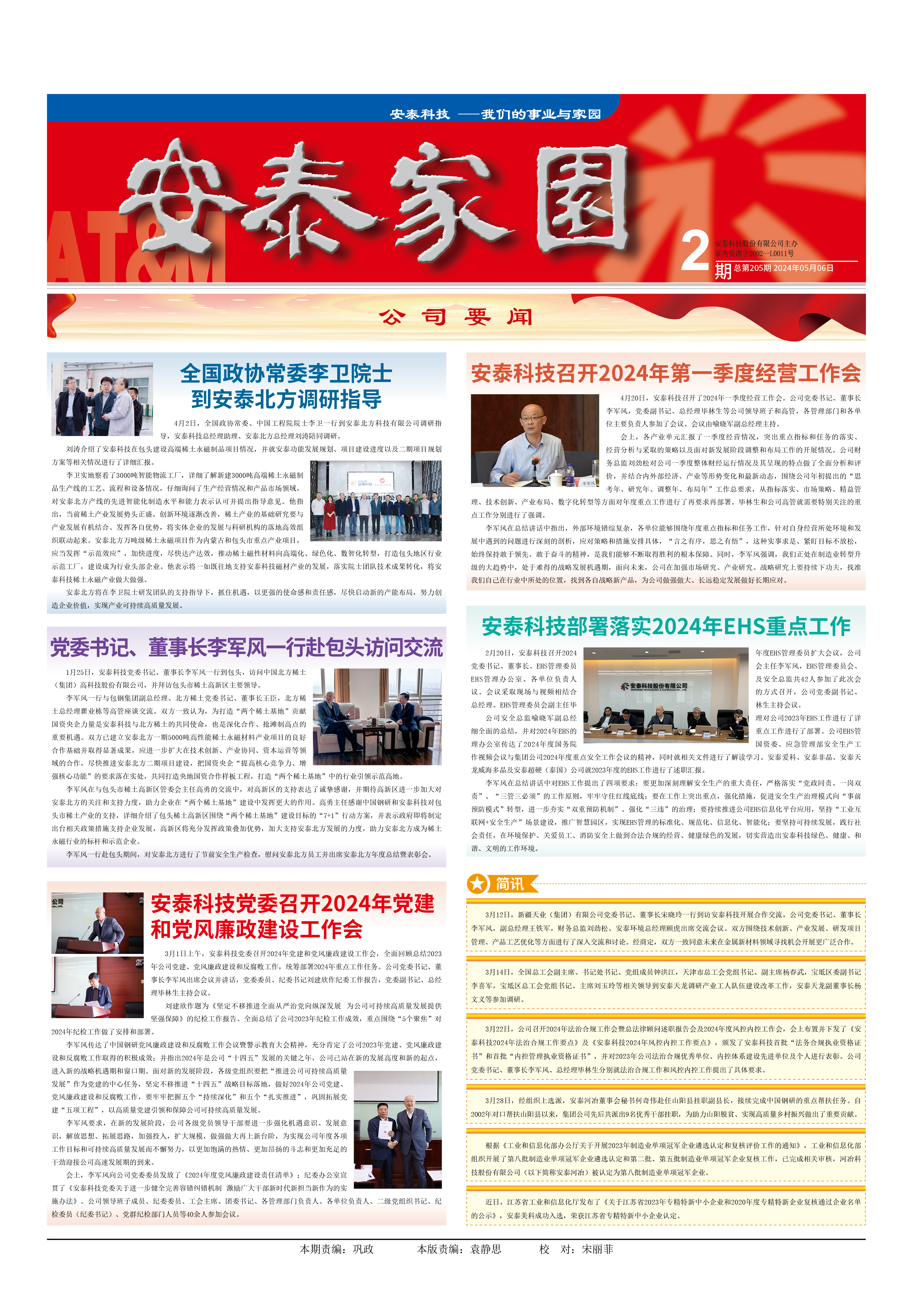 安泰北方將在李衛院士研發團隊的支持指導下,抓住機遇,以更強的使命感和責任感,盡快啟動新的產能布局,努力創造企業價值,實現產業可持續高質量發展。